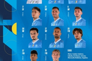 那不勒斯替补:梅雷特、孔蒂尼、别克马、古铁雷斯、德布劳内、马佐基、安古伊萨、吉奥瓦尼、卢卡库
