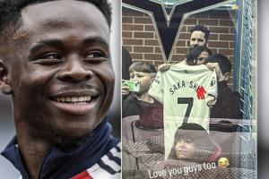 萨卡配文回复:“我也爱你们😂 ”。