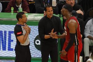 此役热火中锋阿德巴约出场34分钟17投7中,三分10中4、罚球6中6砍下24分9篮板6助攻1抢断1盖帽,正负值+13。