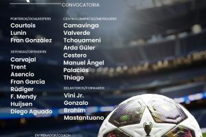 皇马公布战曼城名单:维尼修斯领衔,姆巴佩、贝林厄姆等7人伤缺