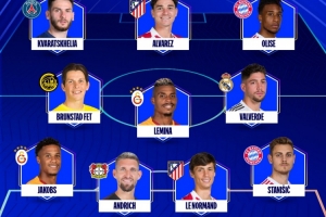 前锋:克瓦拉茨赫利亚(巴黎圣日耳曼)、阿尔瓦雷斯(马竞)、奥利塞(拜仁)