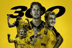 此役是布兰特为多特出战的第300场比赛,他成为多特队史第20位达成这一里程碑的球员,多特官方社媒晒出海报,对他表示祝贺。