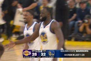 翻转太快!湖人连续失误被勇士1分半打了9-0反超